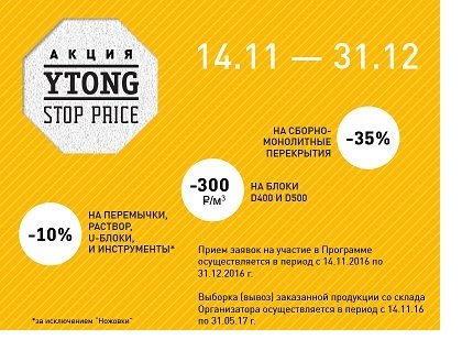 - 10% от цены Прайс-листа YTONG® на U-блоки YTONG®