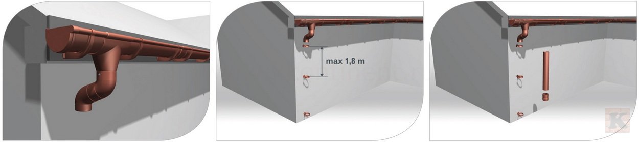 и) Верхнюю часть водостока следует устанавливать после завершения всех работ по монтажу и укладке кровли. Благодаря этому правилу мы избежим возможное повреждение установленного водостока.