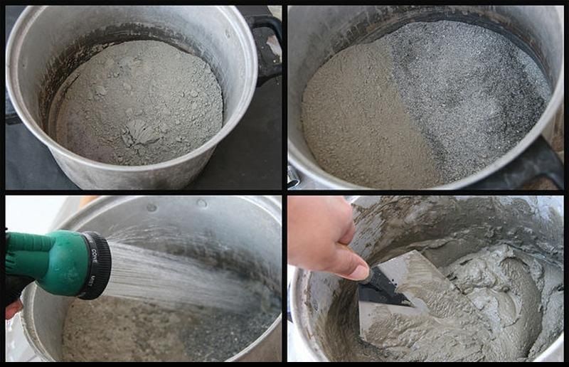 Следует также знать, что комки в растворе свидетельствуют о том, что он плохого качества либо песок не был просеян через сито. Это делать нужно обязательно, даже если на вид песок выглядит чистым. Воду в раствор добавляют не сразу, сначала отдельно смешивают сухие ингредиенты. В бетономешалке соединяется большая часть воды с красителями и отвердителями и только после этого в нее добавляют цемент и песок. Процесс замешивания раствора занимает в общей сложности не более семи минут.