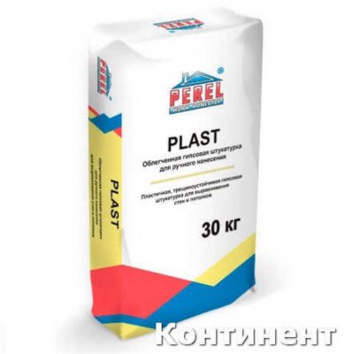 Облегченная гипсовая штукатурка для ручного нанесения Perel PLAST. Пластичная, трещино-устойчивая, гипсовая. Применяется для выравнивания стен и потолков из бетона, газобетона, кирпича и каменных поверхностей ручным способом, внутри жилых и общественных сухих помещений с нормальным уровнем влажности. Расход сухой смеси Plast при слой 10 мм - примерно 10 кг на м2.