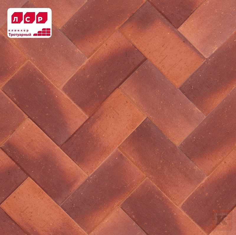 Клинкерная брусчатка красная пестрая Манчестер ЛСР 200х100х50 мм.
