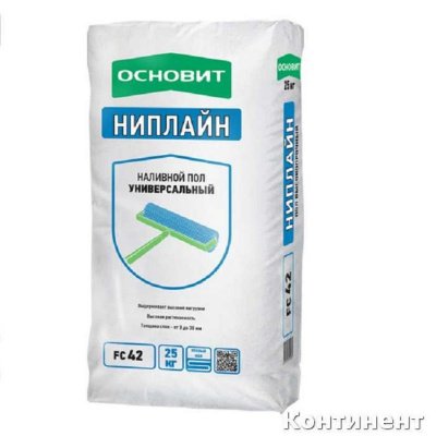 Наливной пол Основит Ниплайн FC42 (Т-42) высокопрочный. Предназначен для финишного выравнивания пола слоем от 3 до 30 мм в любых помещениях (жилые, офисные, общественные и т. д.).