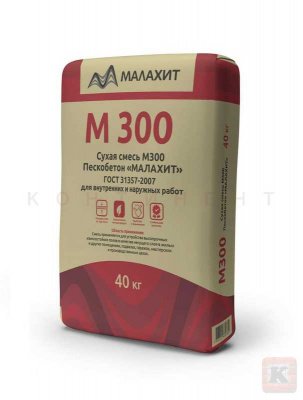 Пескобетон сухая смесь М300 МАЛАХИТ фасовка 40 кг применяется для устройства высокопрочных износостойких полов в качестве несущего слоя в подвалах, гаражах, мастерских, производственных цехах, а также при осуществлении монтажных работ.