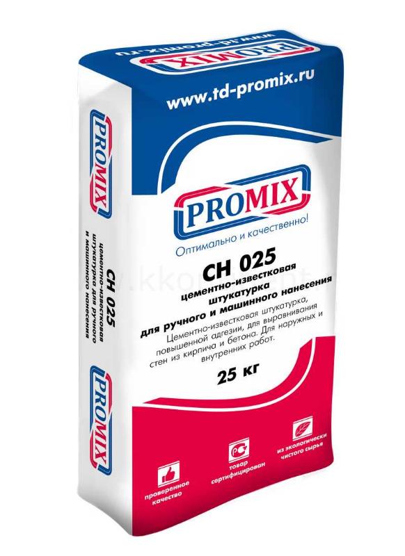 Цементно-известковая штукатурка Promix CH 025 обладает повышенной адгезией. Применяется для внутренних и наружных работ для чернового выравнивания стен кирпичных и бетонных стен. Возможно ручное или машинное нанесение раствора.