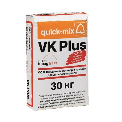 Светло-серая кладочная смесь quick-mix VZ plus артикул 72003. Применяется для кладки клинкерного кирпича с водопоглощением 0-3%.