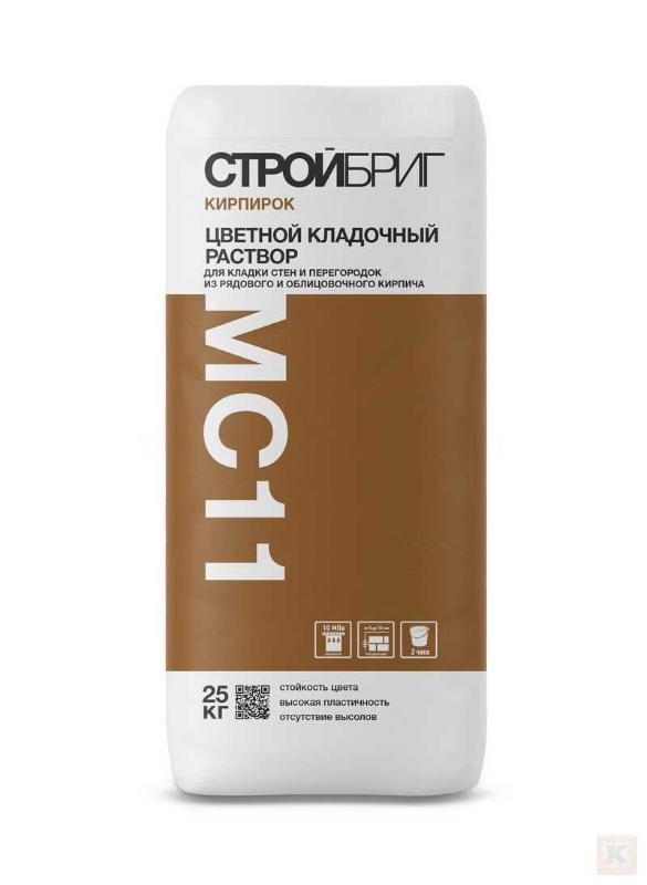 Светло-бежевый кладочный раствор "СТРОЙБРИГ КИРПИРОК MC11- 034 применяется для кладки стен из облицовочного кирпича с возможностью расшивки швов в момент укладки, рекомендуется для керамического кирпича с водопоглощением от 6 до 12%.